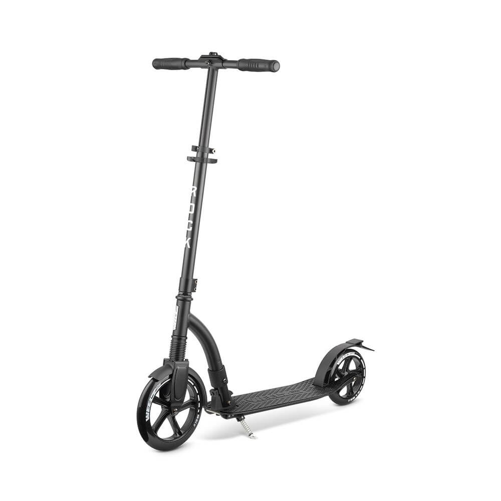 Следующая модель, входящая в топ самокатов, — канадский Weelz Rock, изготовленный в Китае. Очень интересный экземпляр, большой и добротный, надежный и внушительный грузоподъемностью до 120 кг.