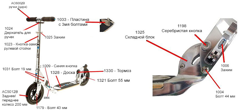 В нашем интернет-магазине можно заказать запчасти на самокат Micro Flex Air: