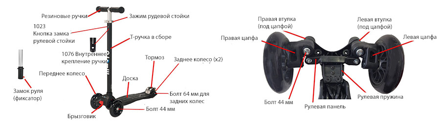 На сайте можно заказать запчасти для самокатов Maxi Micro. Эта модель — одна из самых популярных в мире для детей от 3-х лет. Отличается надежностью конструкции, выдерживает вес до 50 кг. Самокаты оснащены телескопической ручкой.